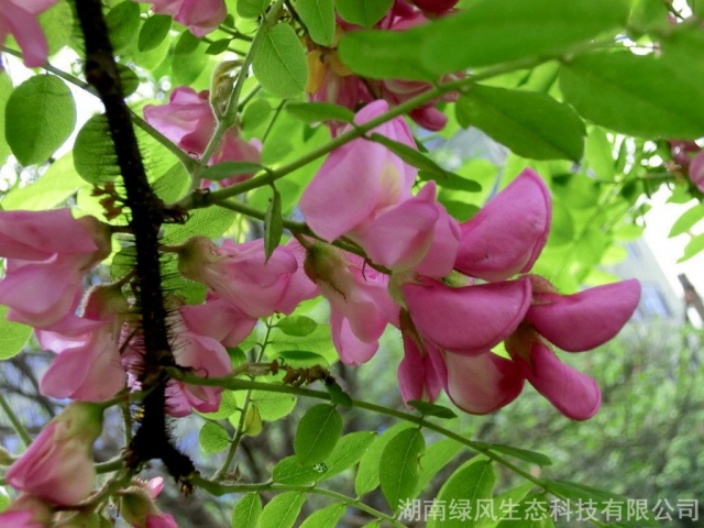 刺槐,又名洋槐。拉丁文名:Robinia pseudoacacia L.豆科、刺槐属落叶乔木,树皮灰褐色至黑褐色,浅裂至深纵裂,稀光滑。 [1] 原生于北美洲,现被广泛引种到亚洲、欧洲等地。刺槐树皮厚,暗色,纹裂多;树叶根部有一对1~2mm长的刺;花为白色,有香味,穗状花序;果实为荚果,每个果荚中有4~10粒种子。刺槐木材坚硬,,燃烧缓慢,热值高。刺槐花可食用。刺槐花产的蜂蜜很甜,蜂蜜产量也高。栽培变种有泓森槐、红花刺槐、金叶刺槐等。在所有刺槐树当中泓森槐生长快,被称为刺槐树之王.。